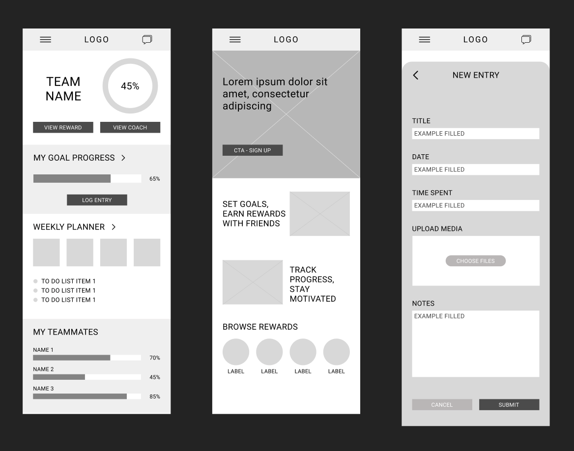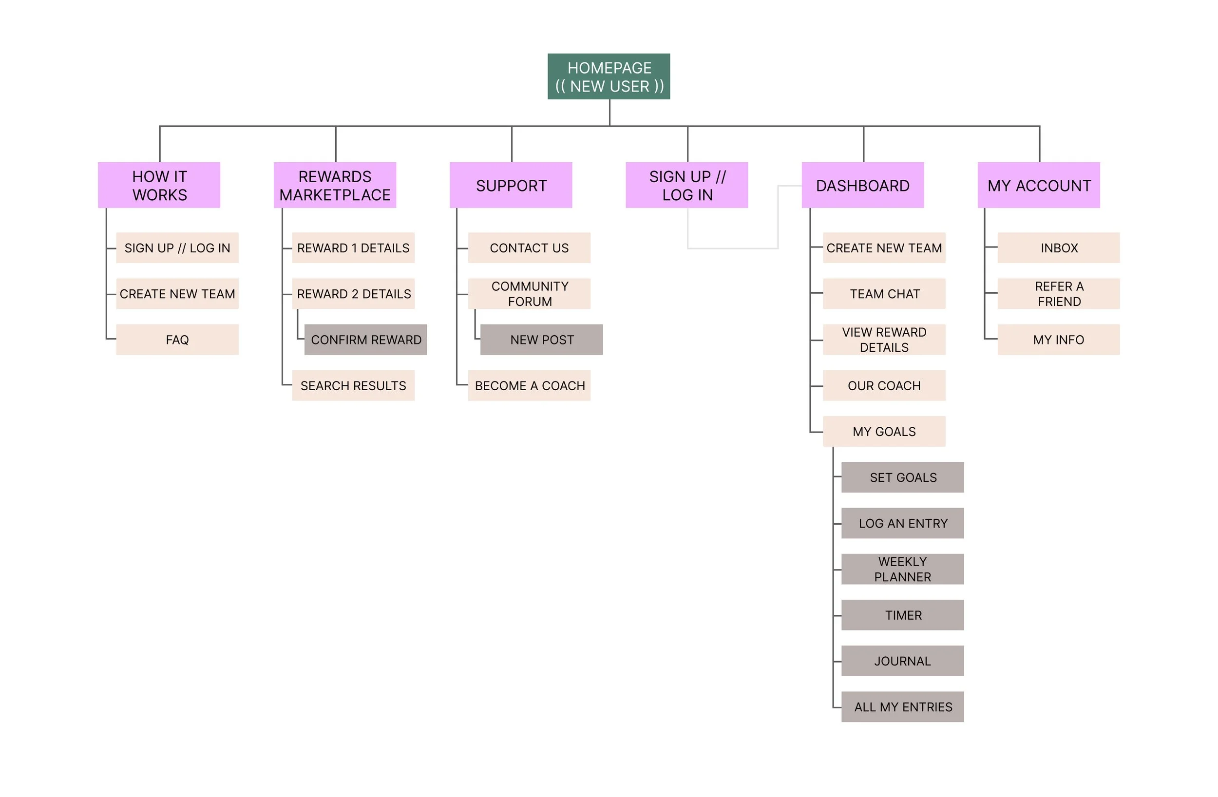 Through competitor research, multiple user interviews, feature prioritization and concept ideation, I designed an app that tracks users’ progress in a fun and gamified way, while rewarding them along the way. Users learn new skills as part of a team in order to stay motivated, feel supported, and cash in on the prize once their goals have been met. Though the app was never launched, there are several key metrics that could be tracked to measure our users’ success including team completion rate, rewards claimed, user referrals/sign ups.