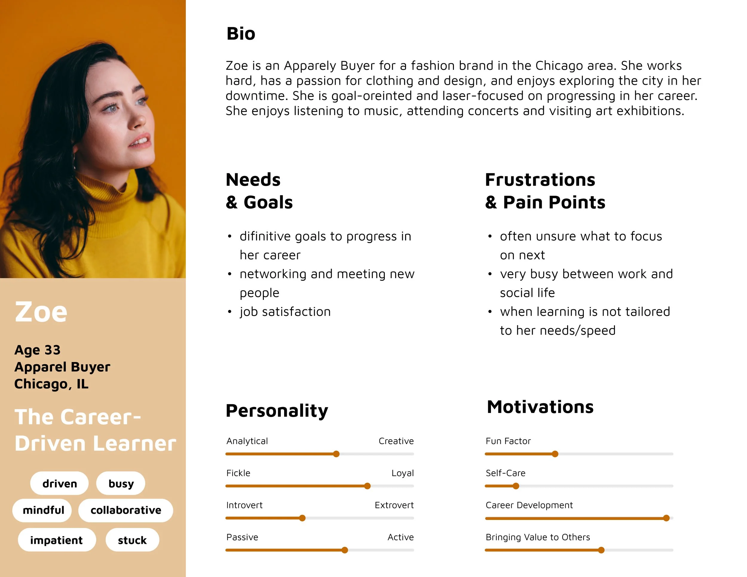 Zoe and Bianca are the target users for Collaboree, highlighting unique learning styles and needs for wanting to learn new skills.